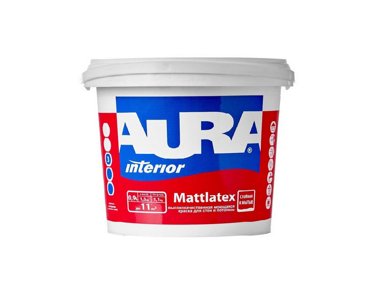 Краска моющаяся Aura Interior Mattlatex база А белая 0,9л