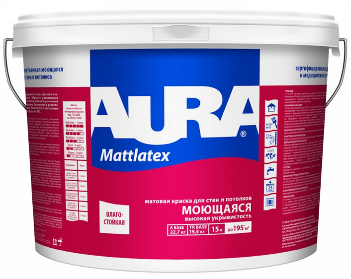 Краска моющаяся Aura Interior Mattlatex база А белая 15л