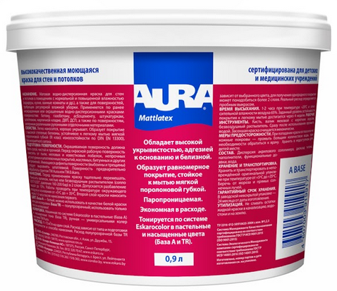Краска моющаяся Aura Interior Mattlatex база TR бесцветная 0,9л