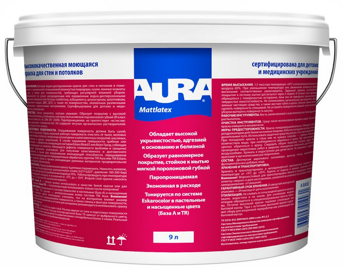 Краска моющаяся Aura Interior Mattlatex база TR бесцветная 9л