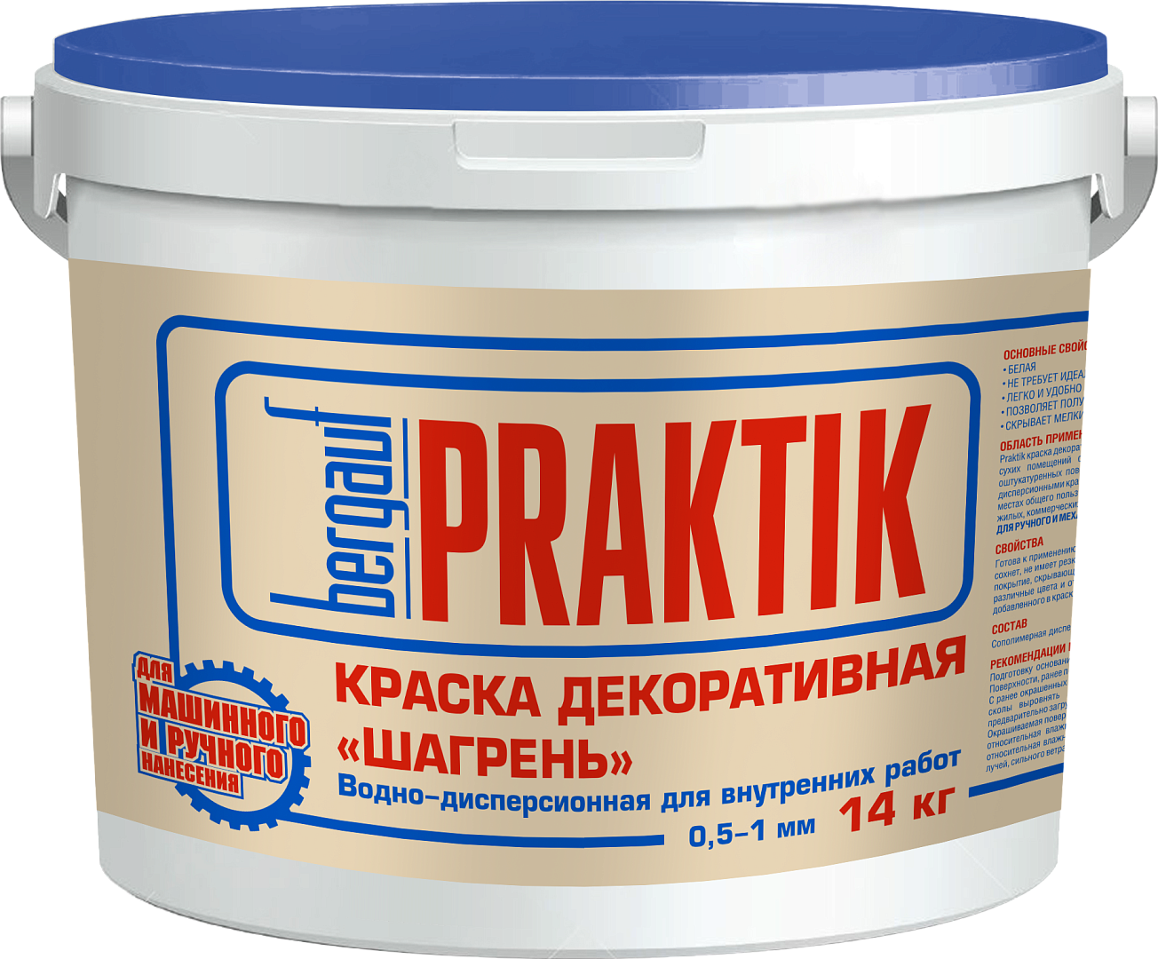 Краска декоративная Bergauf Praktik «Шагрень» 14 кг - Водно-дисперсионная текстурная краска для внутренних работ