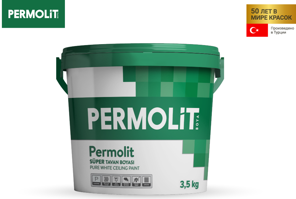 Краска для потолка Permolit супербелая профессиональная 2л/3,5кг