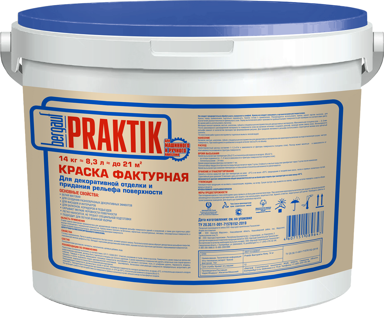 Краска фактурная Bergauf Praktik 14 кг - Для декоративной отделки и придания рельефа поверхности