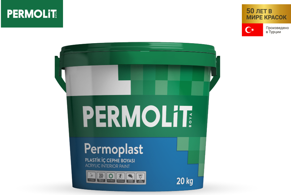 Краска интерьерная латексная PERMOPLAST - износостойкая моющаяся интерьерная краска, которая имеет декоративный эффект покрытия "матовый пластик".