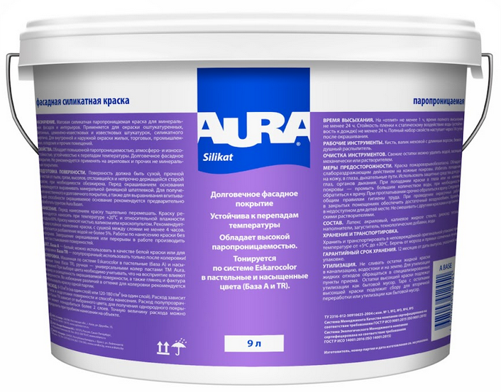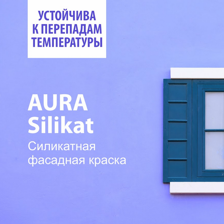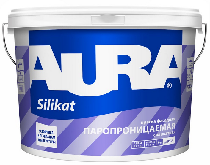Силикатная фасадная краска Aura Fasad Silikat – это матовая силикатная паропроницаемая краска для минеральных фасадов и интерьеров. Применяется для окраски оштукатуренных, бетонных, цементно-известковых и известковых штукатурок, силикатного кирпича и предназначена для внутренней и наружной окраски жилых, торговых, промышленных, складских и прочих помещений.