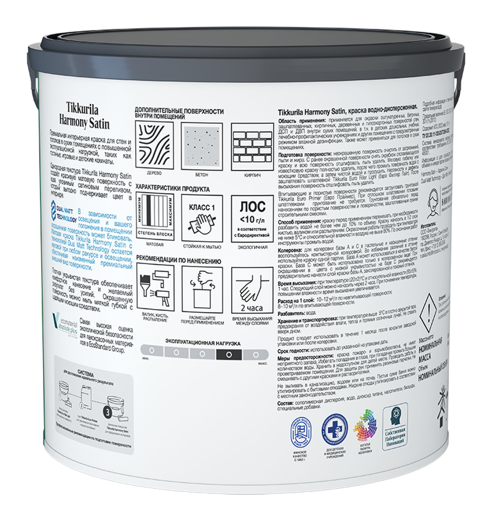 Колеровка: Колеруется согласно каталогам «Тиккурила Симфония» в светлые пастельные тона, а также может самостоятельно использоваться как белая краска.