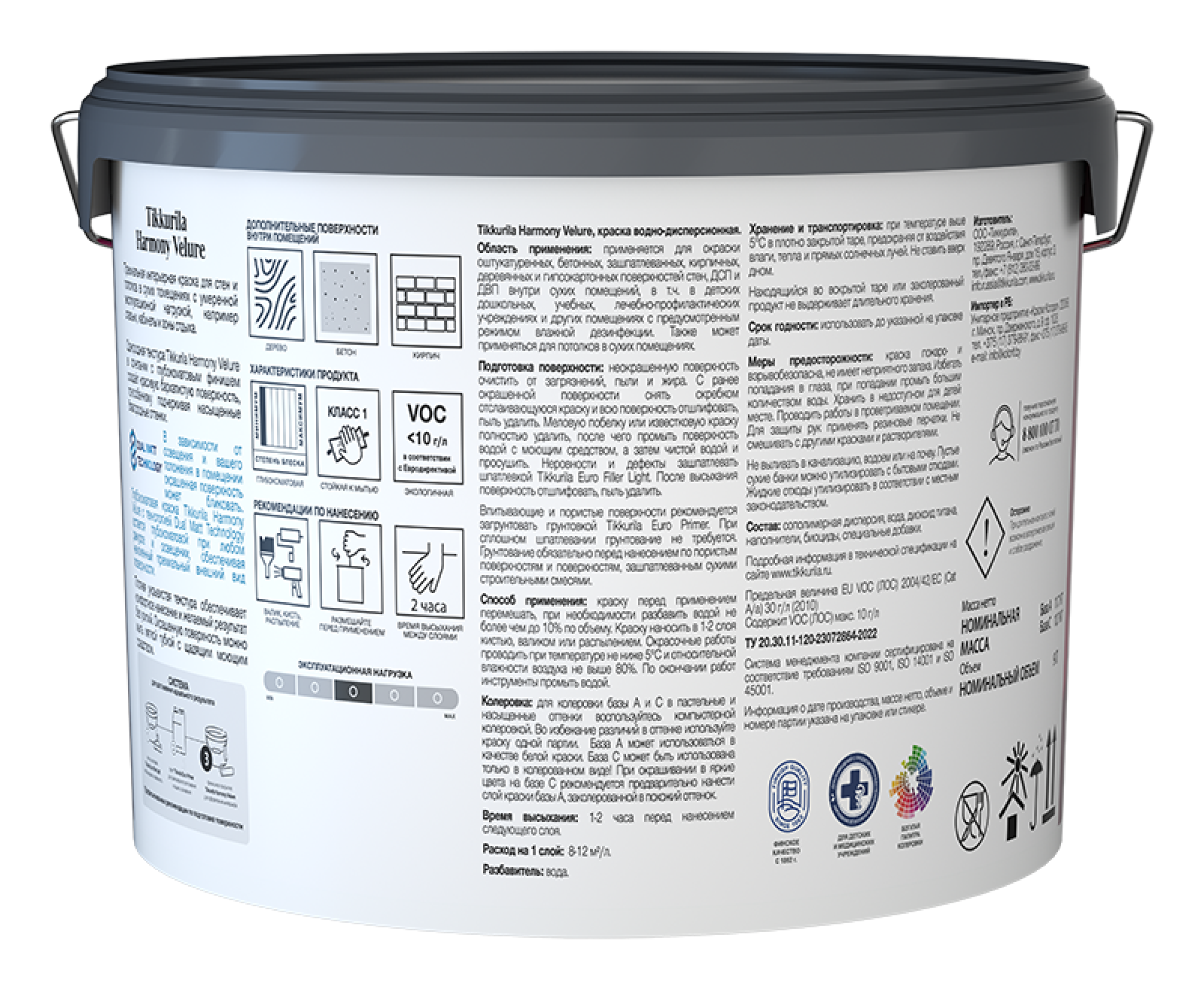 Колеровка: Для получения пастельных и насыщенных оттенков воспользуйтесь компьютерной колеровкой Tikkurila. База A может также использоваться в качестве белой краски. База С используется только в колерованном виде. При окрашивании в яркие цвета на базе С, рекомендуется предварительно нанести слой краски базы А, заколерованной в похожий оттенок. Во избежание различий в оттенке используйте краску одной партии.