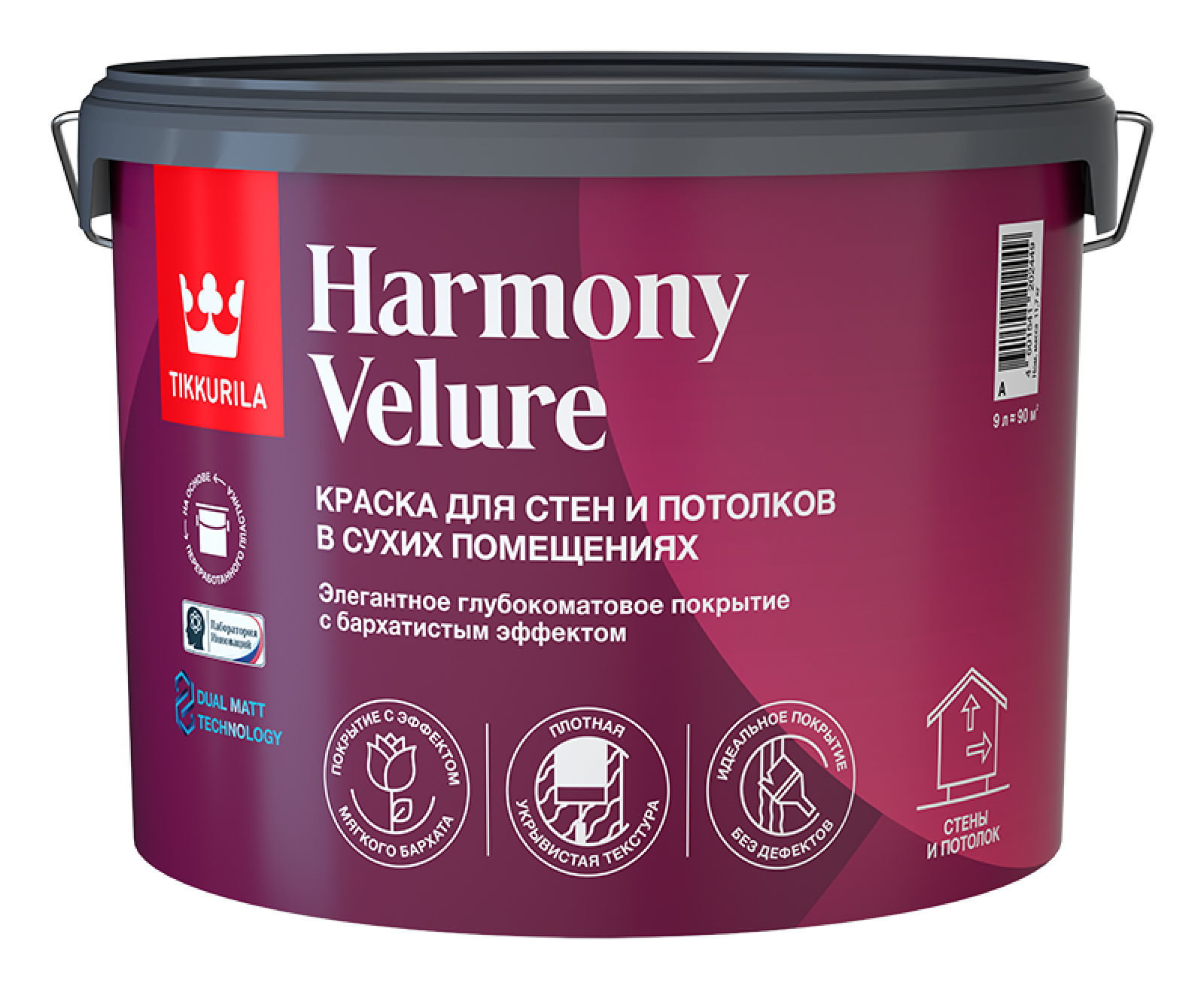 Краска моющаяся Tikkivala / Tikkurila Harmony Velure база А белая 9л