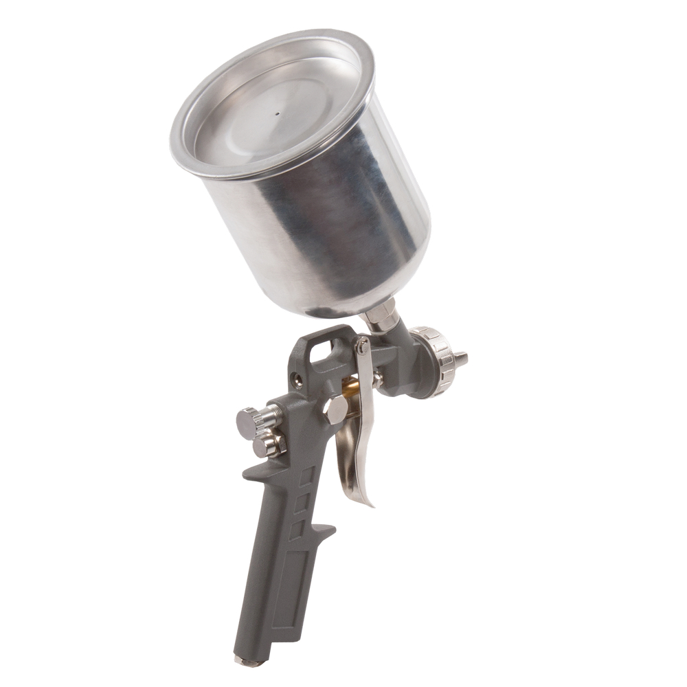 Пневматический краскопульт QUATTRO ELEMENTI – используется для нанесения красок, лаков и грунтовок на различные поверхности. Верхнее расположение бачка емкостью 0,6 л. позволяет использовать его в полном объеме. Корпус выполнен из металла, поэтому устойчив к механическим повреждениям. Необходимая ширина веерообразной струи регулируется с помощью специальной муфты около сопла. Сопло имеет диаметр в 1,5 мм.