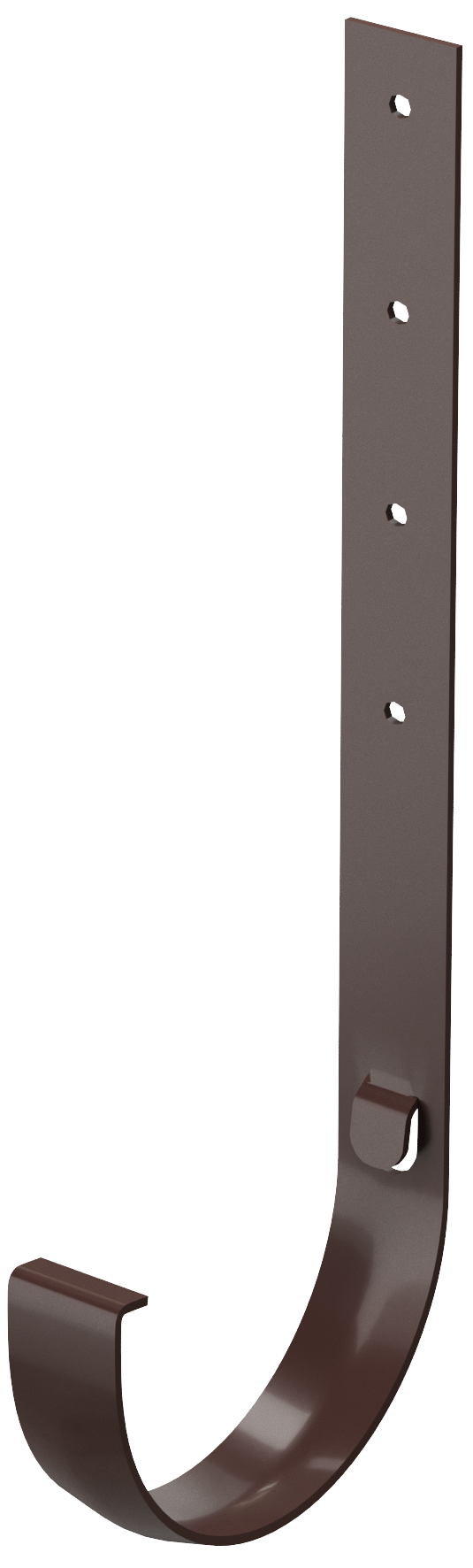Металлический кронштейн (крюк желоба) предназначен для крепления желоба на кровлях без лобовой доски. Крепится на стропильную систему, всегда устанавливается до монтажа кровли. Длина опорной части кронштейна - 300 мм.