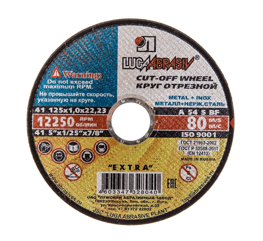 Круг отрезной по металлу Луга 125 х 22 х 1 мм