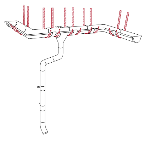 Крюк желоба длинный - это элемент водосточной системы, предназначенный для фиксации водосточного желоба. Устанавливается на обрешетку до начала монтажа кровельного материала с шагом 600-900мм. Обязательно крюки устанавливаются на торцах желоба, в местах соединения желобов между собой и с углами желоба.