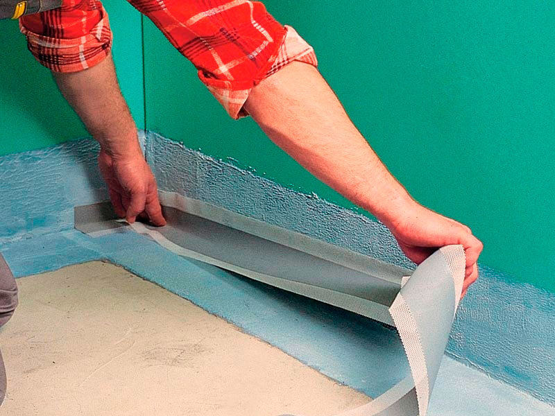 При необходимости отшлифовать и/или выровнять неровные основания ровнителями Kesto . Загрунтовать сухую поверхность пола до начала выполнения работ по гидроизоляции грунтовкой Kesto в соответствии с инструкцией по ее применению. Гидроизоляционную мастику всегда следует перемешивать перед применением. Нанести гидроизоляционную мастику Kesto на горизонтальные углы и места выхода водопроводных труб, прикрепить упрочняющую ленту Kesto к свежему слою гидроизоляционной мастики и убедиться, что она полностью промокла.