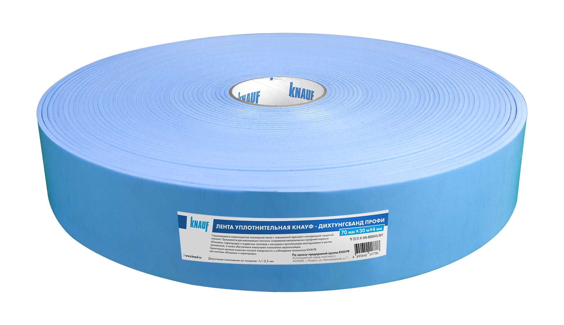 Лента КНАУФ Дихтунгсбанд ПРОФИ – это уплотнительная, самоклеящаяся лента, изготовленная из вспененного полиуретана с клеевой основой для монтажа, упакована в форме рулона.