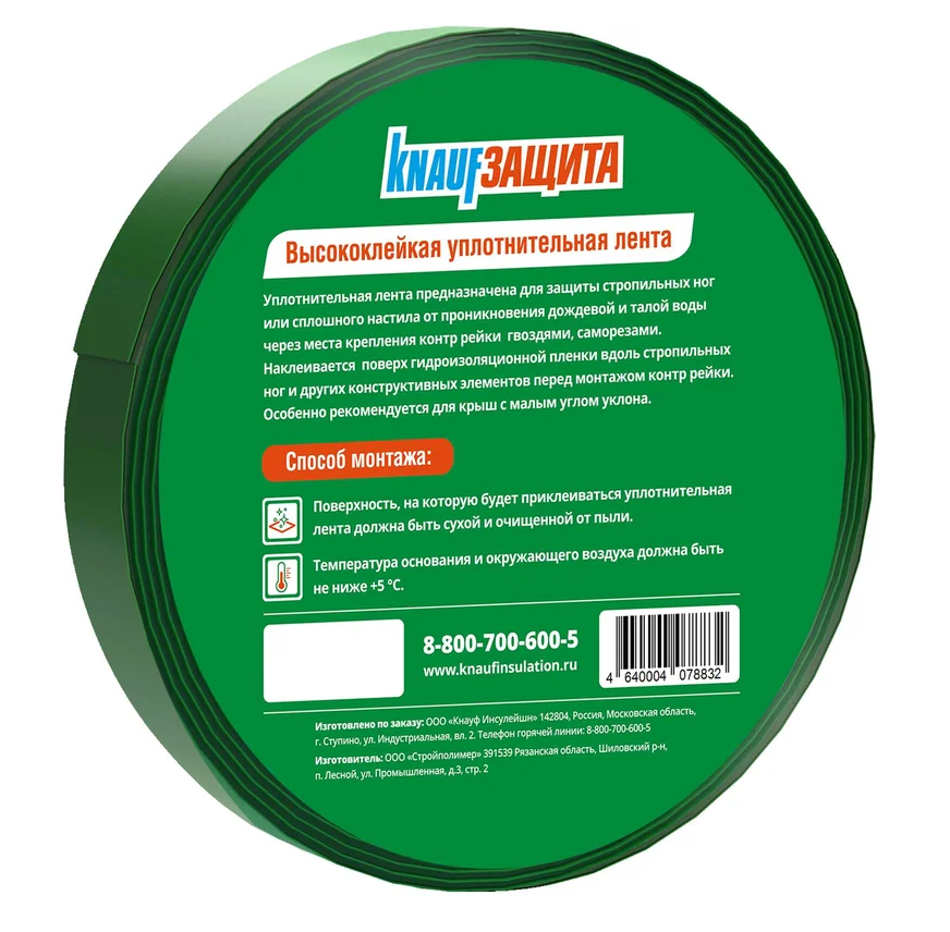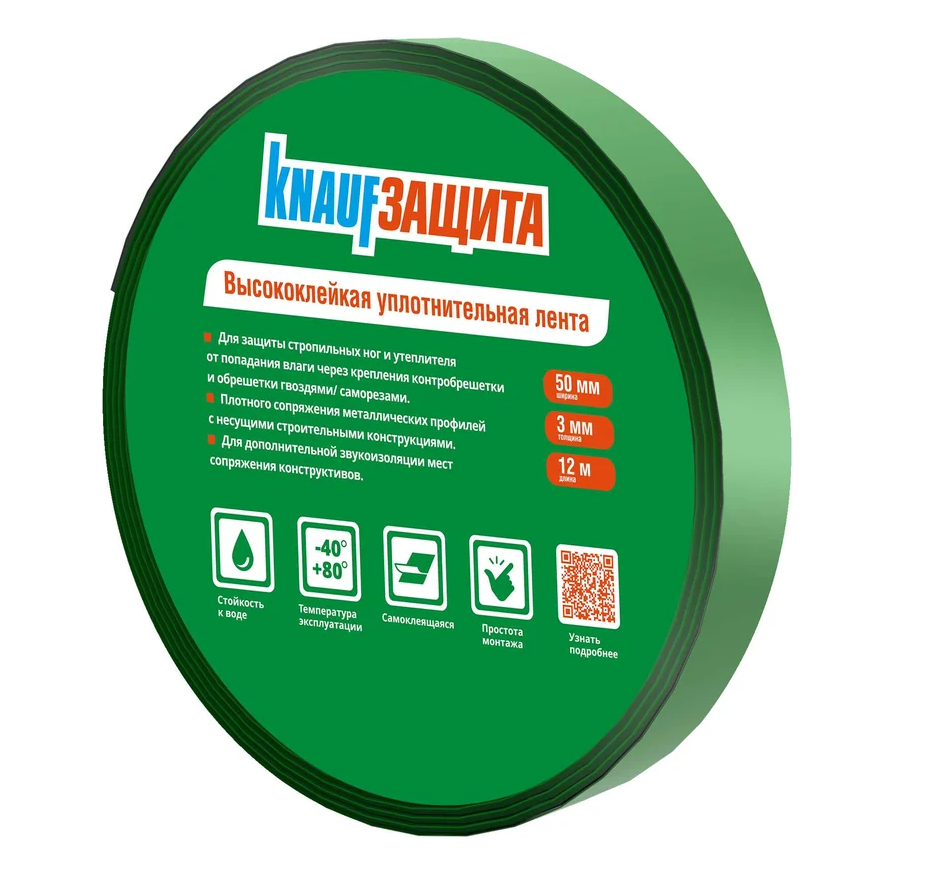 Высококлекая уплотнительная лента KnaufЗащита является эффективным решением для обеспечения надежной защиты стропильных ног и сплошного настила от проникновения дождевой и талой воды. Она предотвращает протечки в местах, где крепятся контррейки с помощью гвоздей или саморезов.