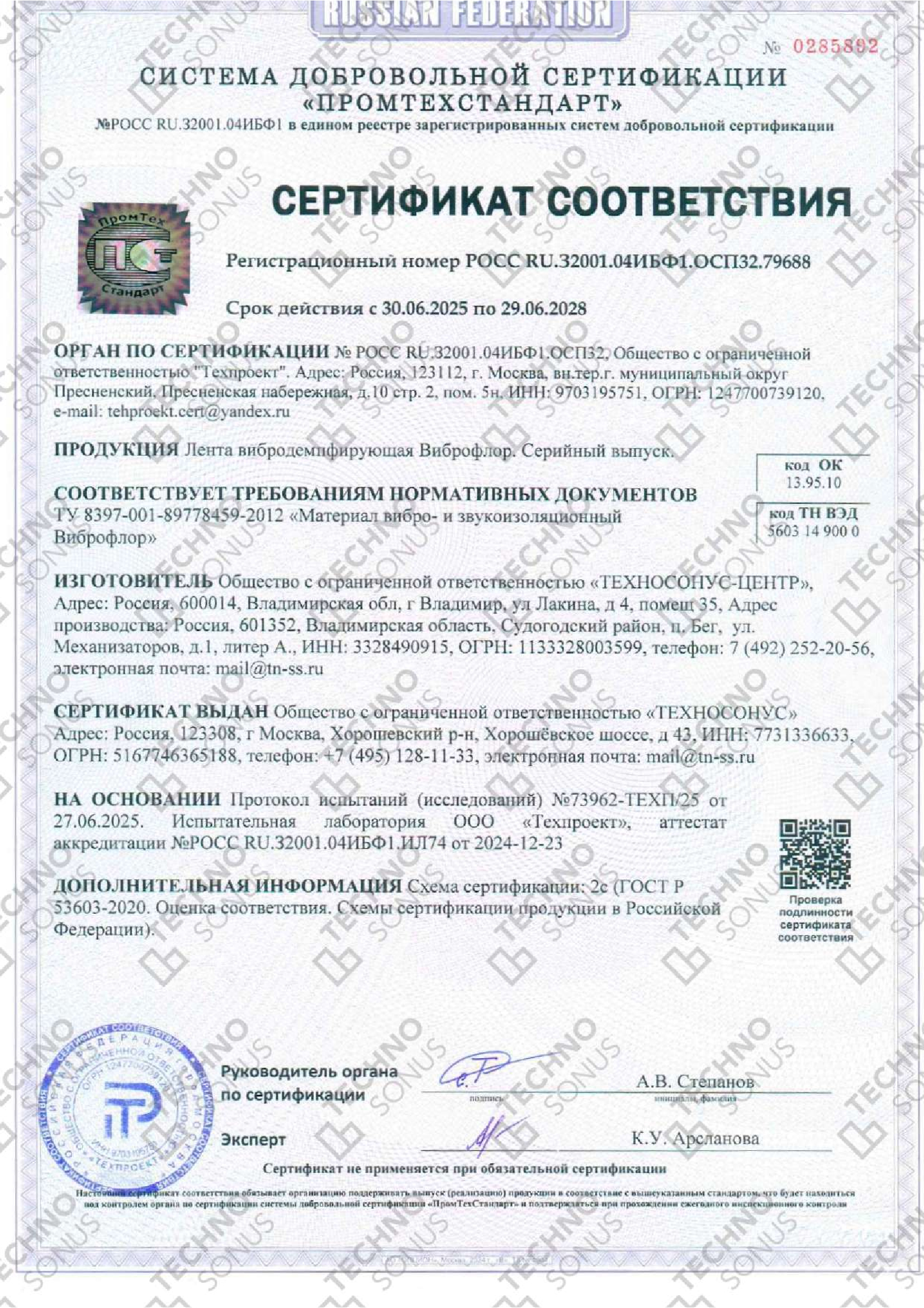 Высокие демпфирующие характеристики ленты достигаются за счет пористо-волокнистой структуры стеклохолста, что позволяет сохранить его виброакустические свойства под действием динамических и статистических нагрузок.