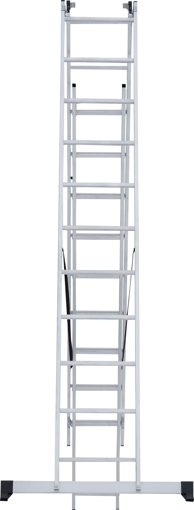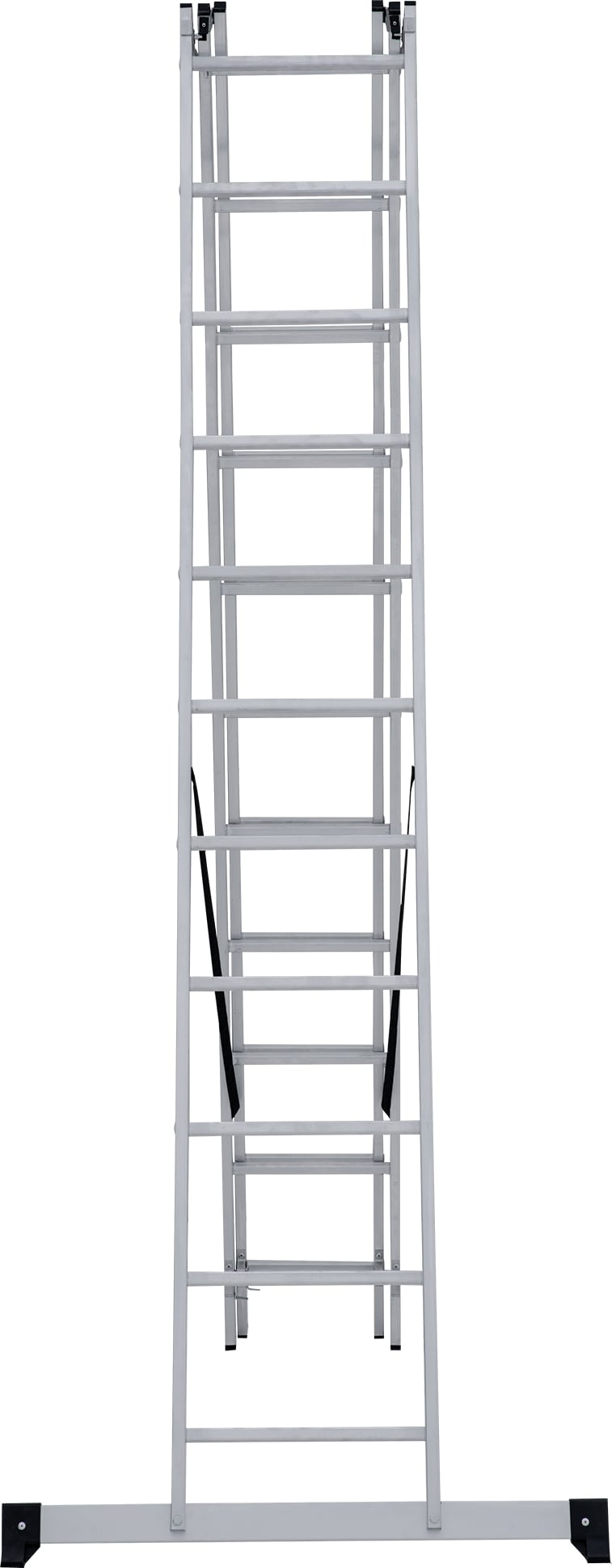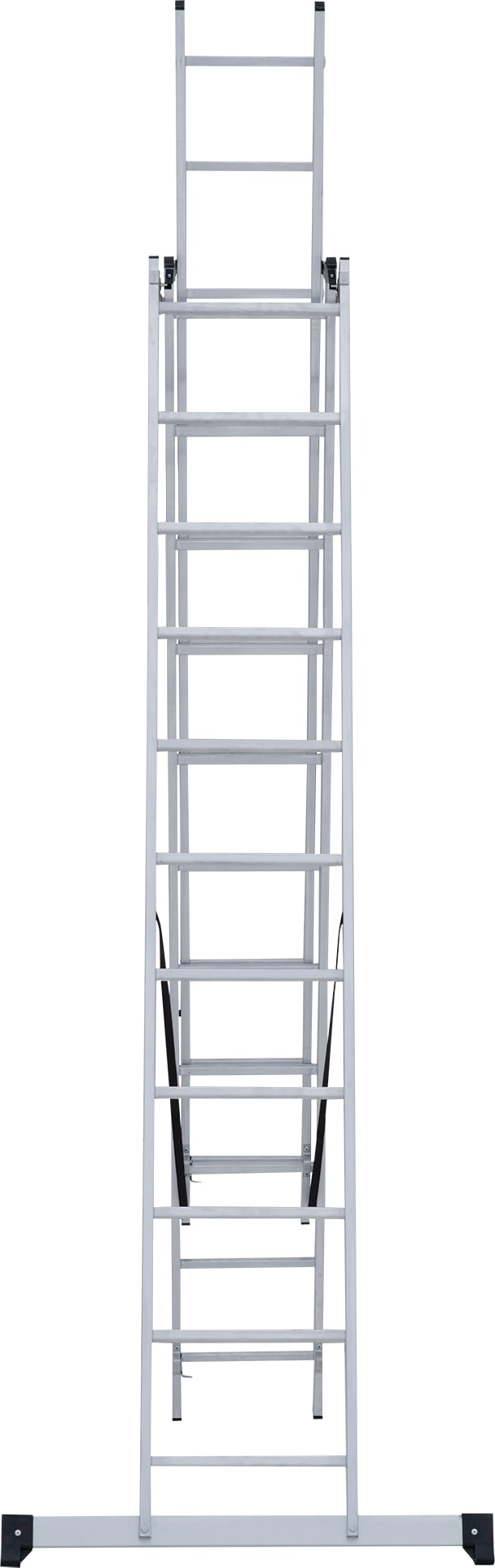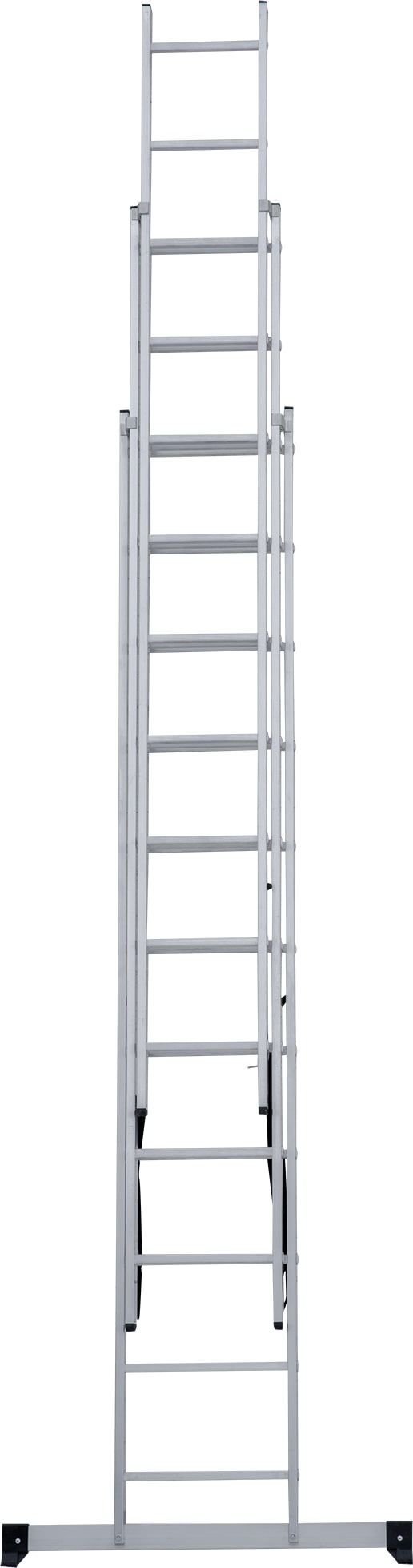Лестница трехсекционная – это универсальная лестница, которая может использоваться в разных режимах: как приставная, раздвижная, двухсторонняя стремянка, стремянка с выдвижной секцией и лестничный марш.