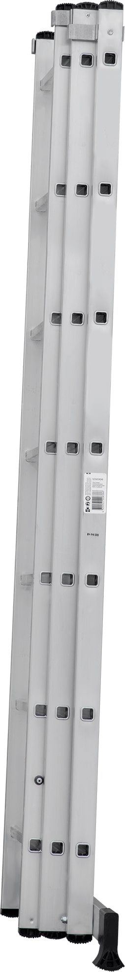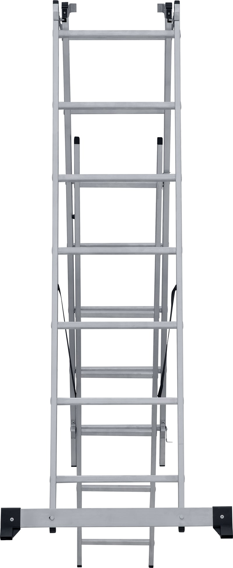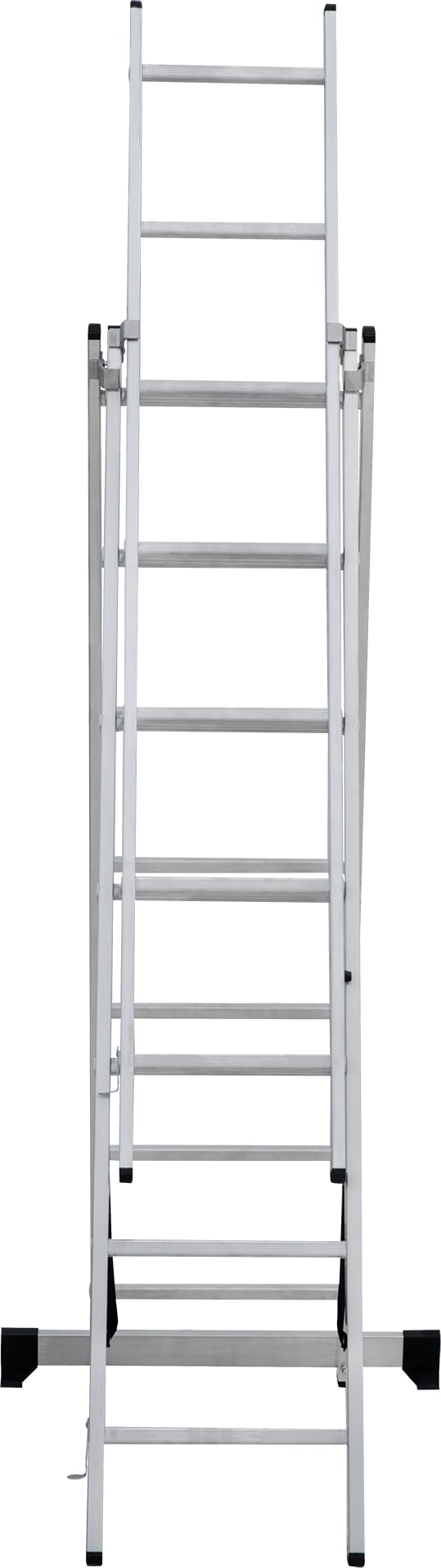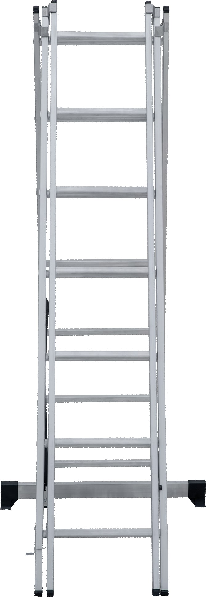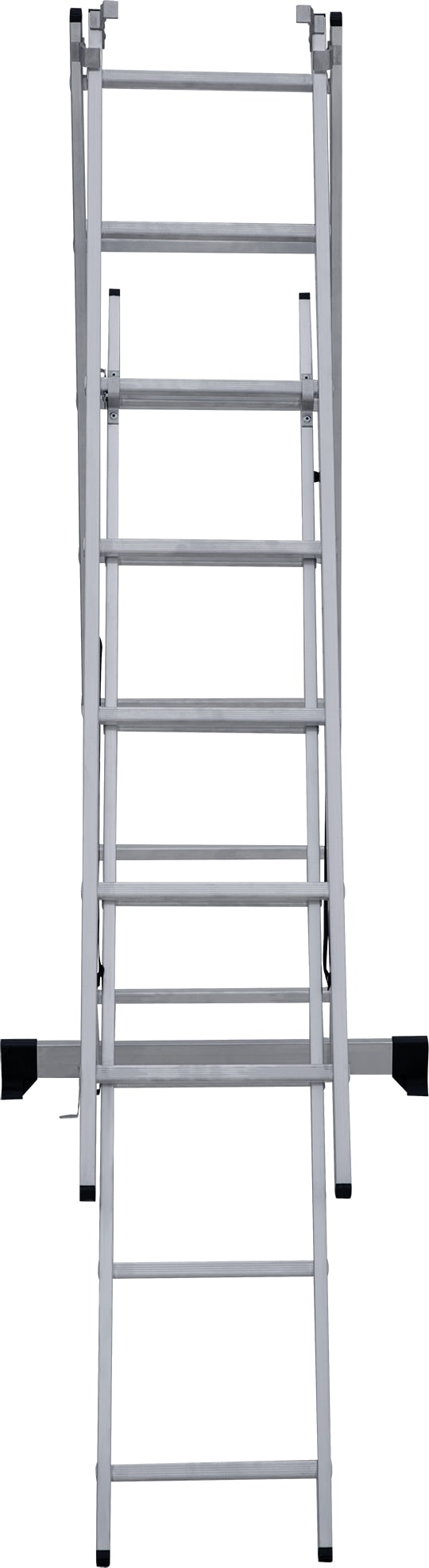 Лестница трехсекционная – это универсальная лестница, которая может использоваться в разных режимах: как приставная, раздвижная, двухсторонняя стремянка, стремянка с выдвижной секцией и лестничный марш.