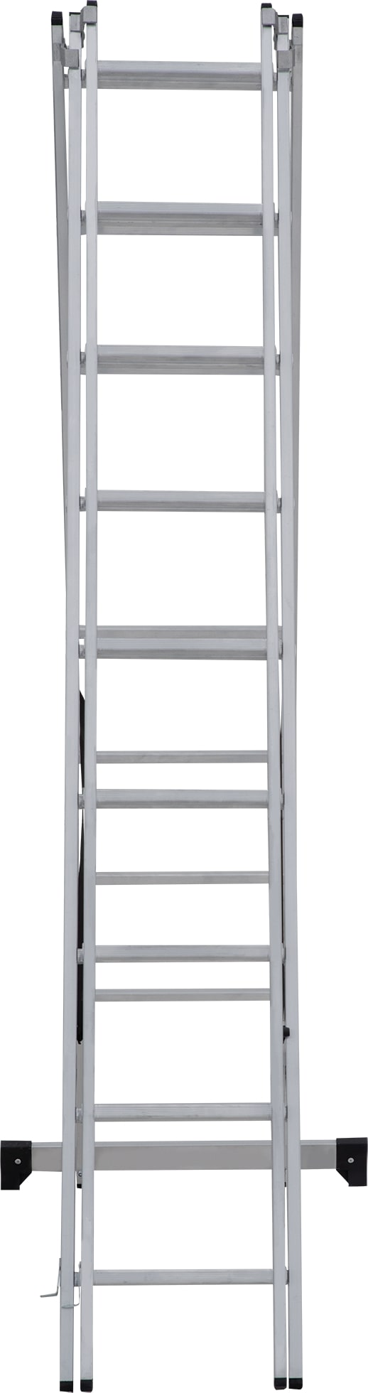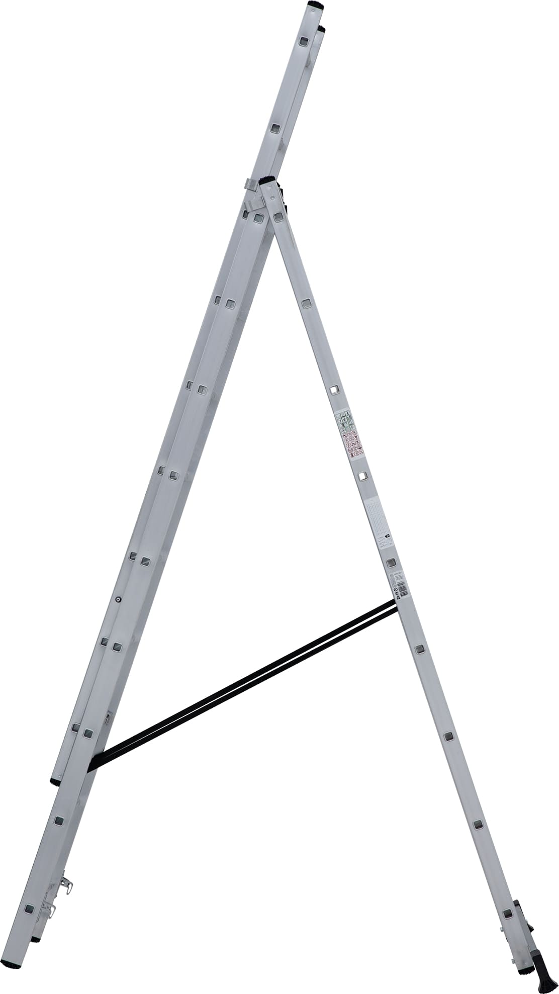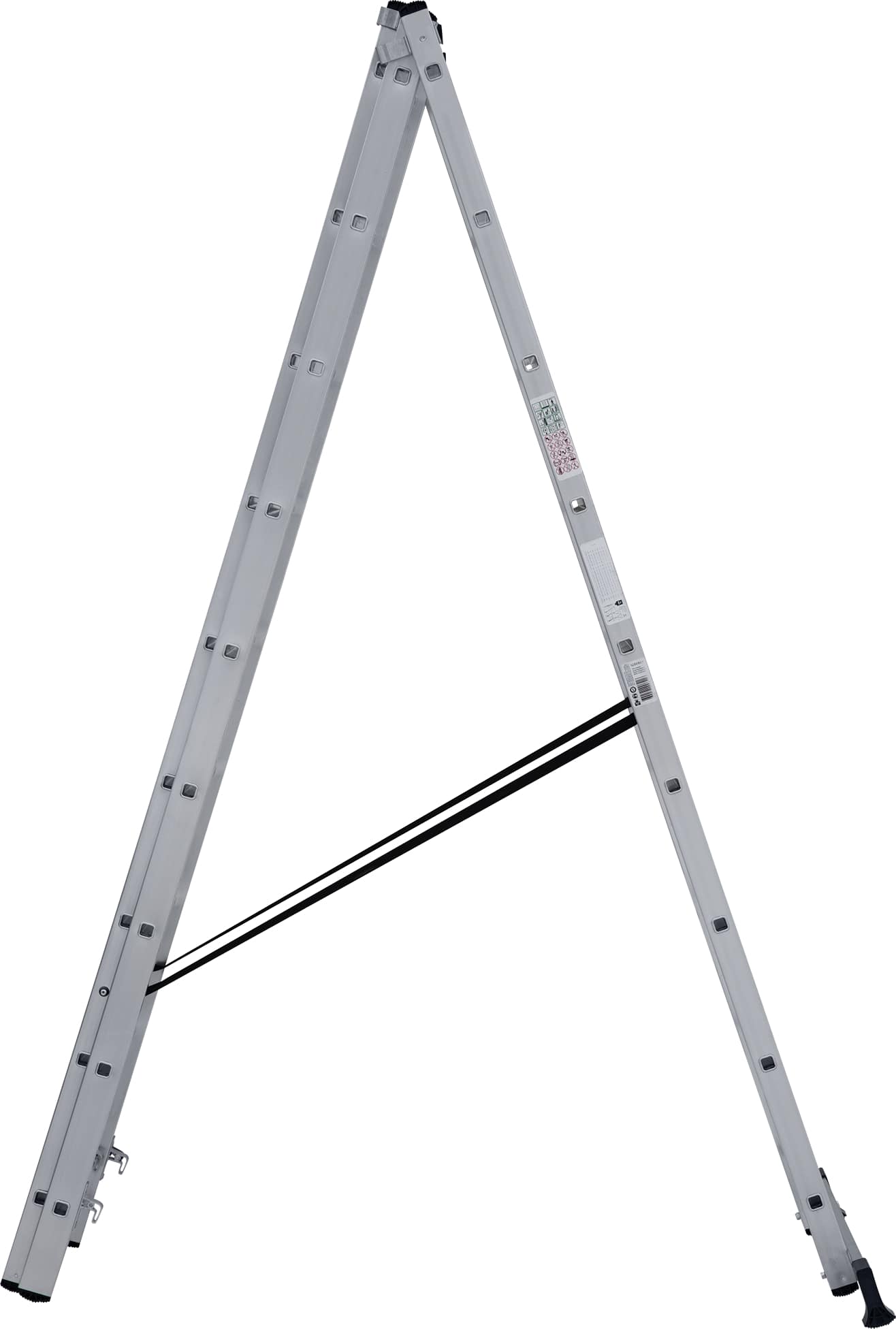Лестница трехсекционная – это универсальная лестница, которая может использоваться в разных режимах: как приставная, раздвижная, двухсторонняя стремянка, стремянка с выдвижной секцией и лестничный марш.