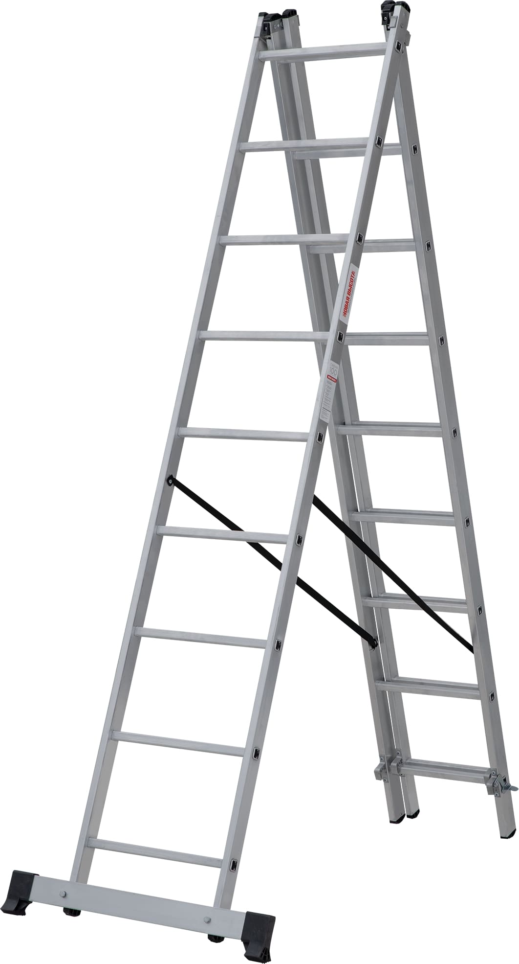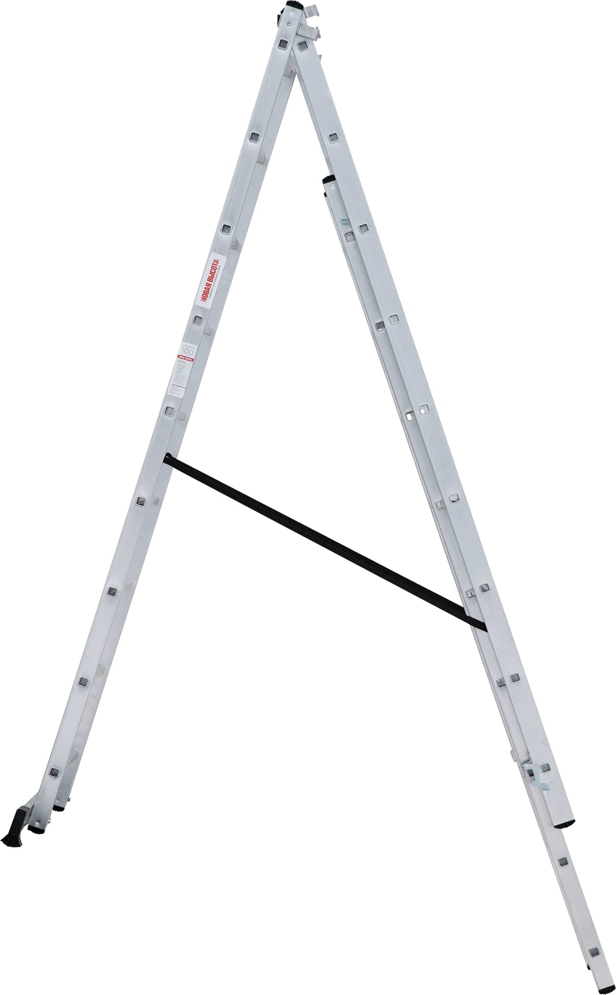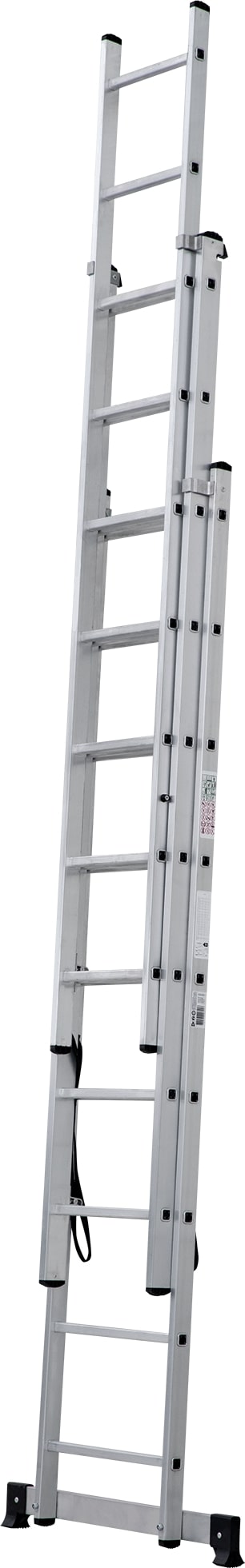 Лестница трехсекционная – это универсальная лестница, которая может использоваться в разных режимах: как приставная, раздвижная, двухсторонняя стремянка, стремянка с выдвижной секцией и лестничный марш.