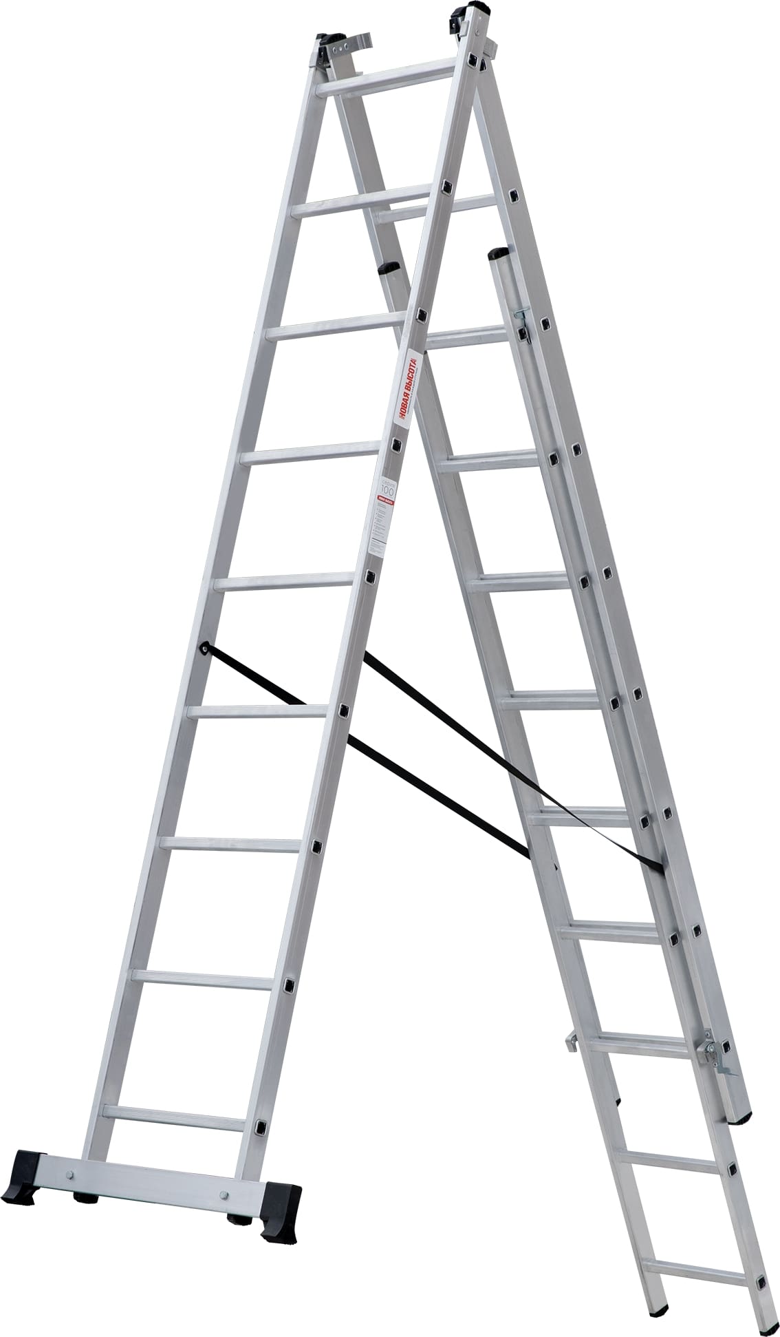 Приобретал на стройку в качестве универсального варианта лестницу Новая Высота 3-х секционную. Можно использовать и как стремянку и как приставную лестницу, что достаточно удобно