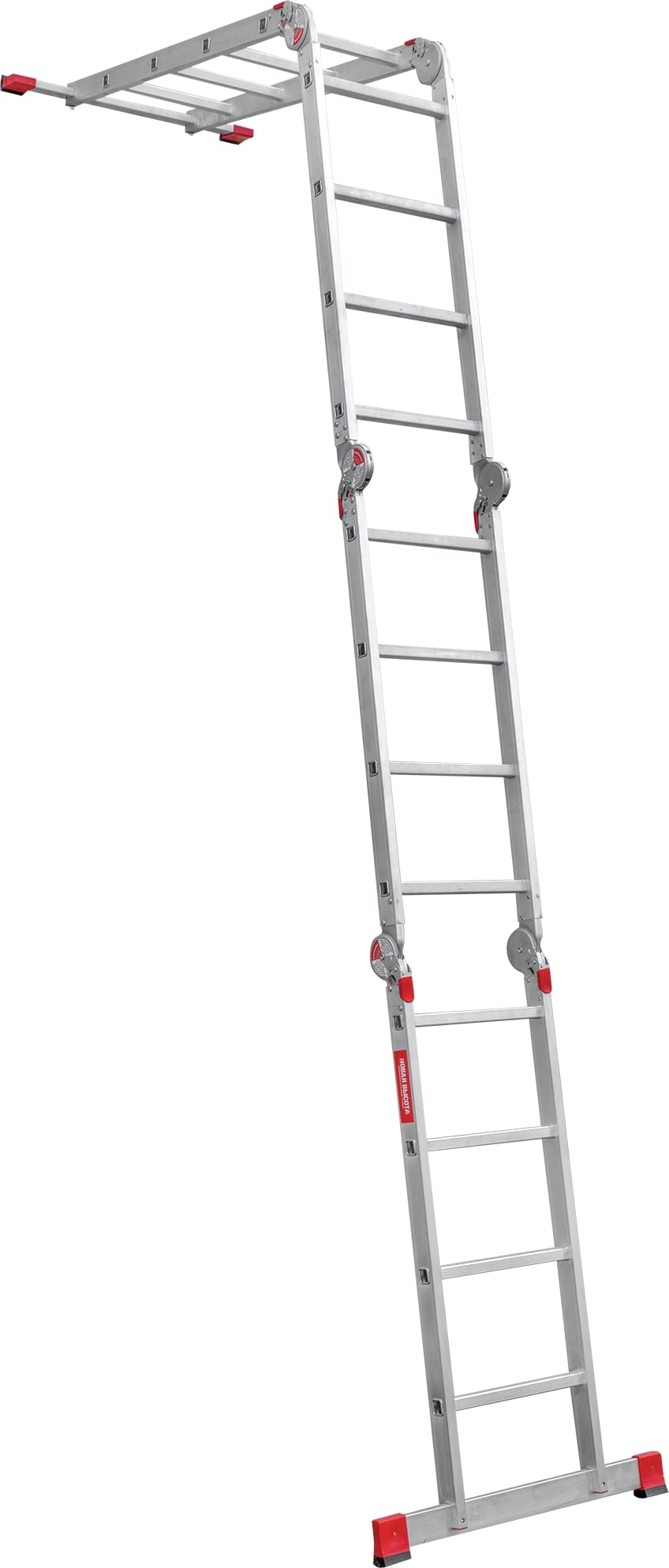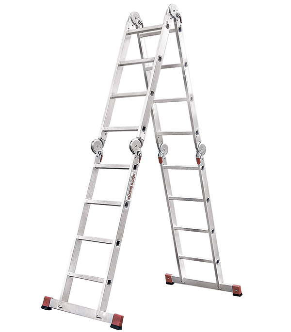 Удобная лестница-трансформер для использования в быту и профессиональных целях. Лестницу можно применять в качестве стремянки, приставной конструкции, помоста и приставной согнутой лестницы. Легко складывается для хранения и транспортировки, занимает мало места в сложенном состоянии.
