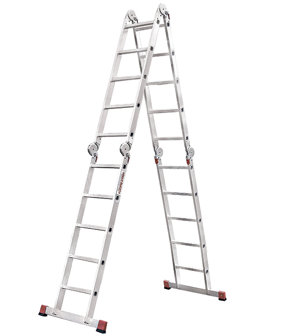 Удобная лестница-трансформер для использования в быту и профессиональных целях. Лестницу можно применять в качестве стремянки, приставной конструкции, помоста и приставной согнутой лестницы. Легко складывается для хранения и транспортировки, занимает мало места в сложенном состоянии.