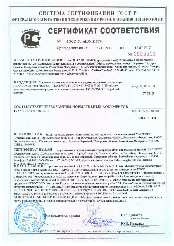 Линолеум Бонус предназначен для укладки в любые жилые помещения и общественные помещения с невысокой степенью эксплуатации и устойчив к воздействию влаги, ножек мебели и каблуков.