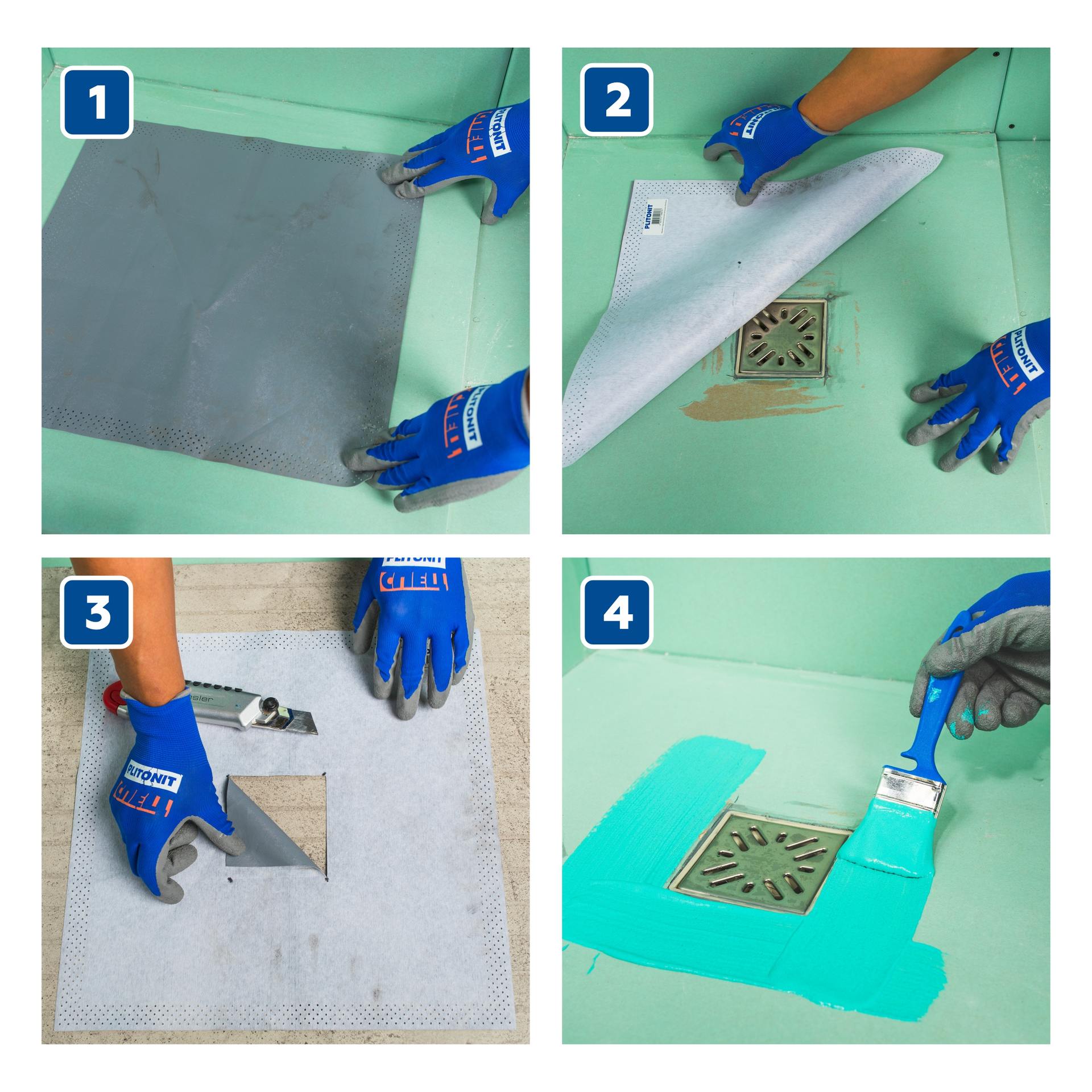 Долго думал, каким образом гидроизолировать слив в душевой. Продавец в Материке предложил сделать это с помощью гидроизоляционной манжеты напольная фирмы плитонит. Действительно, очень удобно, быстро. И сделано в Европе, что тоже немаловажно