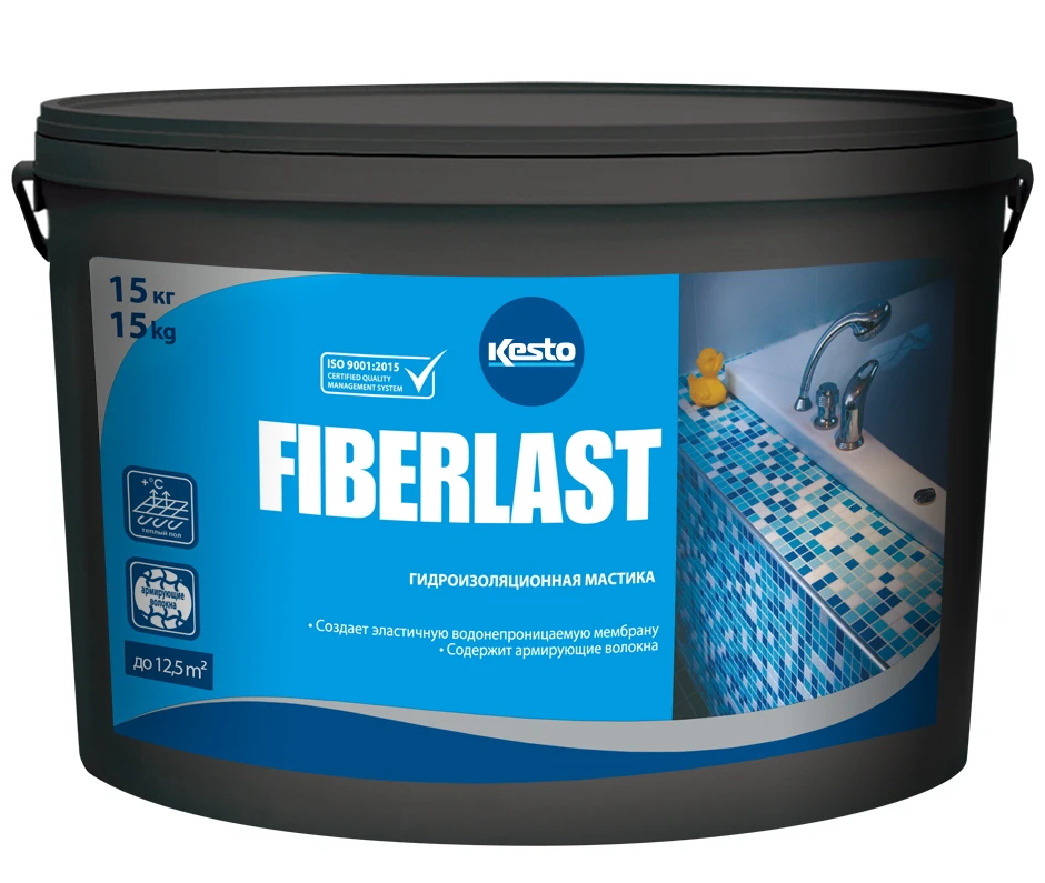 Kesto Fiberlast - гидроизоляционная мастика с содержанием армирующих волокон для гидроизоляции стен и полов во влажных и мокрых помещениях. Не применяется на объектах, постоянно подвергаемых нагрузке водой (например, бассейны) и для поверхностей, температура которых превышает +60 °С (например, стены саун).