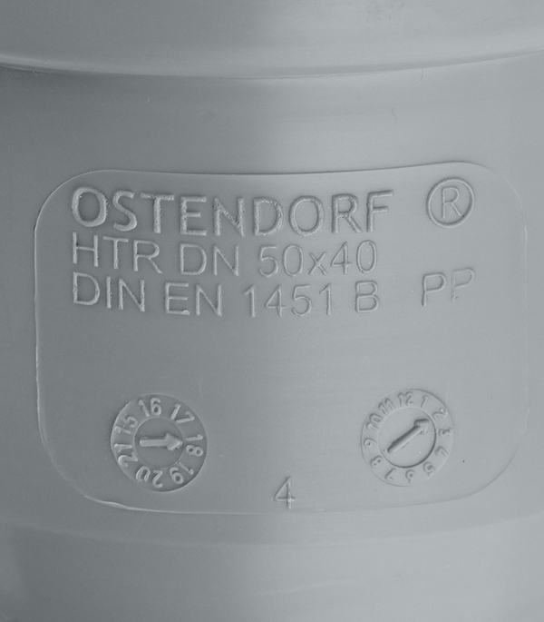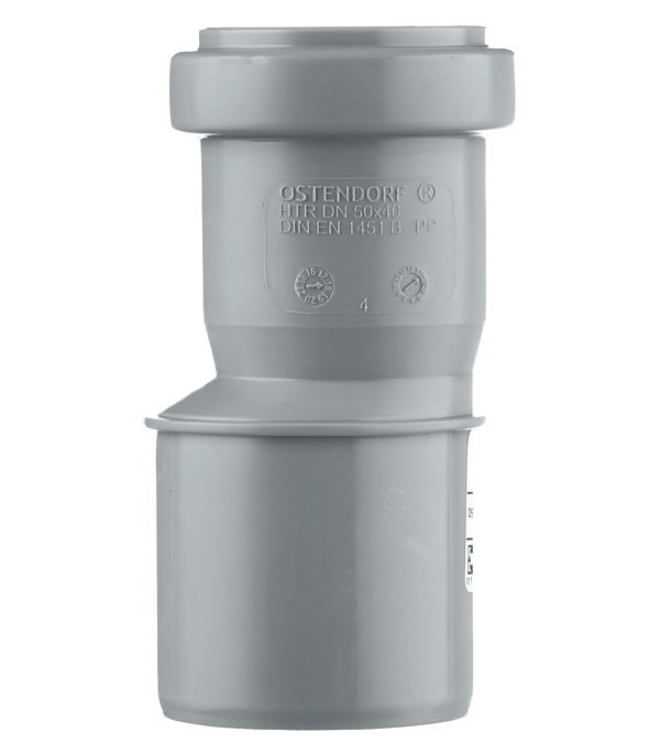 Специализированный фитинг, обеспечивающий плавный переход между трубами Ostendorf разных диаметров. Изготовлен из высококачественного полипропилена с минеральными добавками, что гарантирует идеальную совместимость с системами Ostendorf.