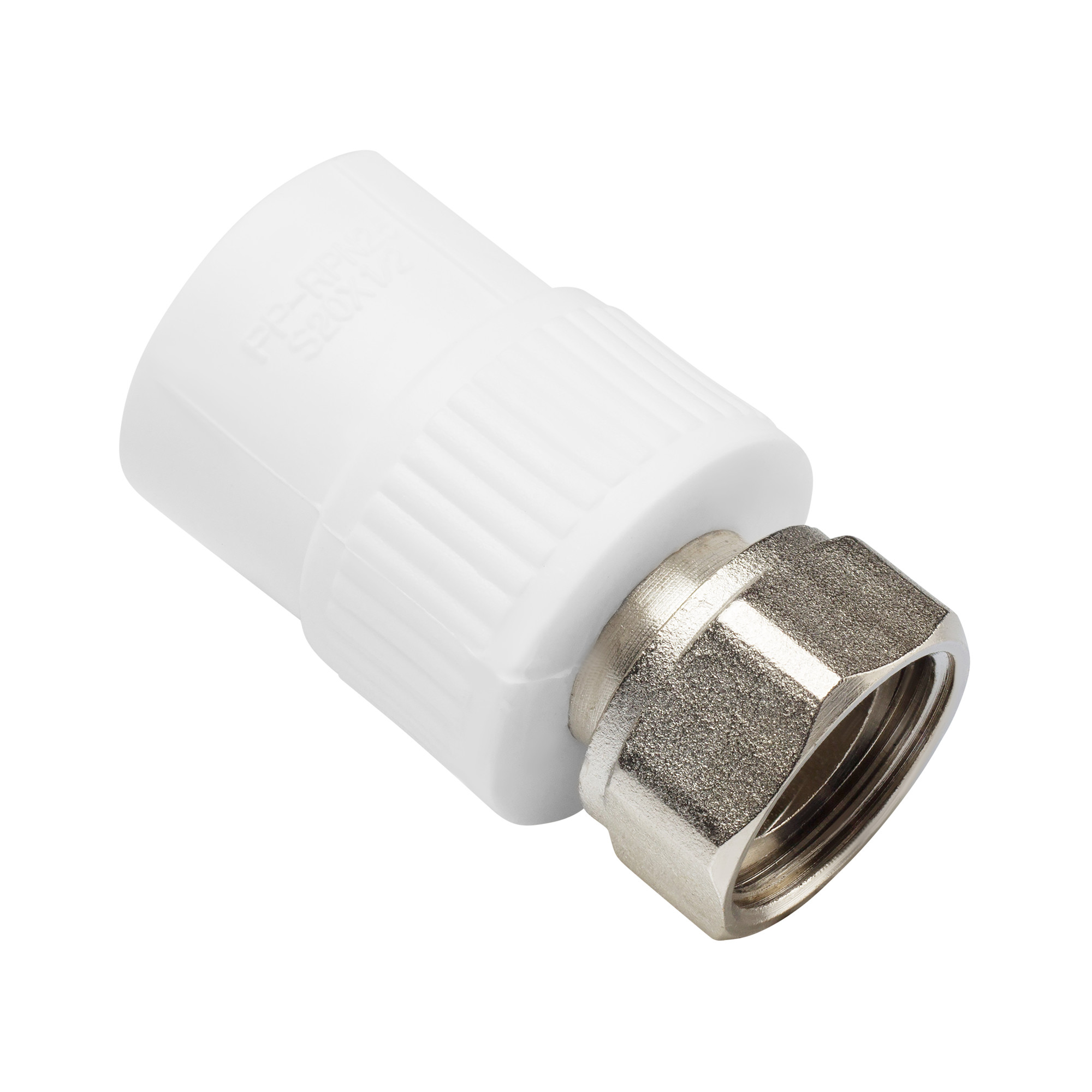 Муфта полипропиленовая с накидной гайкой 20 х 1/2" ВР применяется для соединения ПП (полипропиленовых) труб с фитингами.