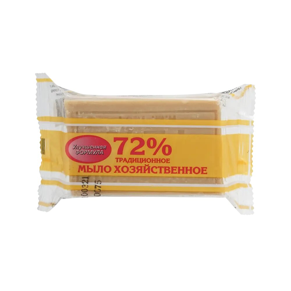 Хозяйственное мыло 72% изготовлено из натуральных компонентов и содержит не менее 72% жирных кислот. Оно предназначено для стирки, уборки и мытья посуды. Не содержит ароматизаторов и красителей.