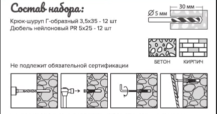 Крюк-шуруп Г-образный 3,5х35 - 12 шт