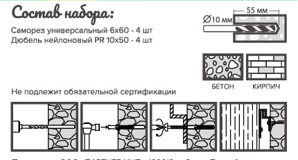 Набор для крепления навесного шкафа к кирпичу или бетону. В наборе есть все элементы для выполнения задачи максимально быстро и комфортно.