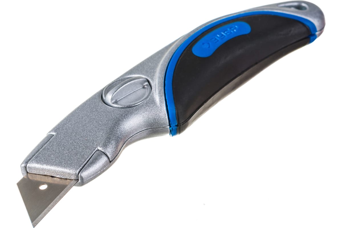 Замена лезвия осуществляется с помощью ролика-фиксатора, без использования доп. инструмента. Благодаря обрезиненному корпусу нож не скользит в руке.