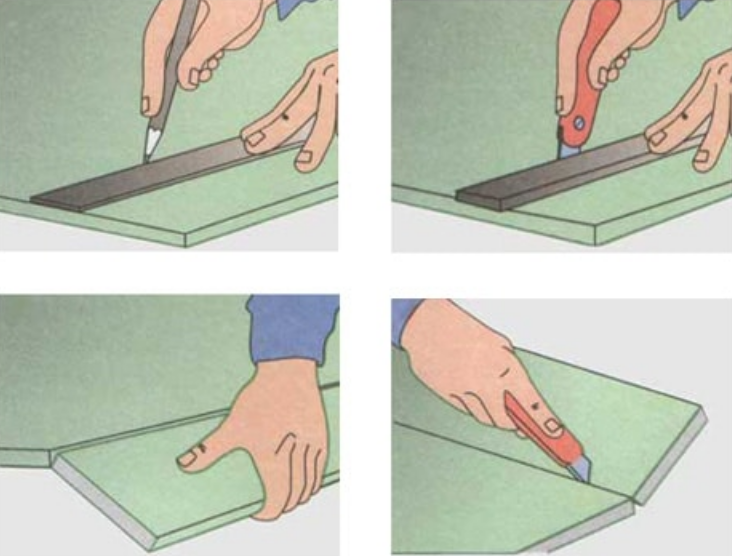 Раньше для резки ГВЛ использовал лобзик, теперь пользуюсь ножом Кнауф. Надрезаю в месте излома, а затем руками разламываю. Мелкие неровности можно повторно подрезать ножом.