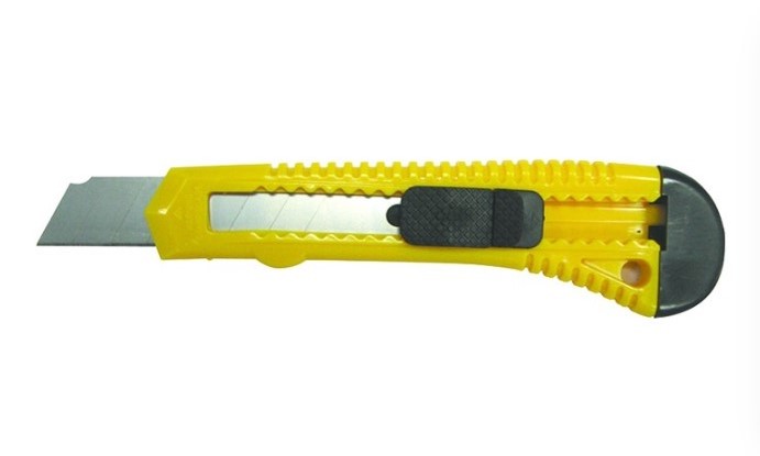 Нож с пластиковым корпусом. Предназначен для разрезания бумаги, картона и других различных материалов, при котором не требуется большого усилия.