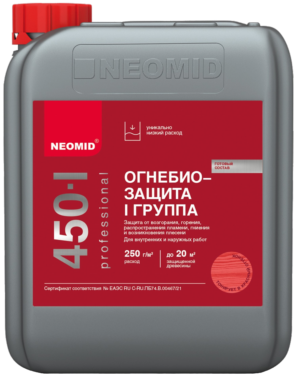 Огнебиозащита для дерева Neomid 450-1 I группа красная 5кг