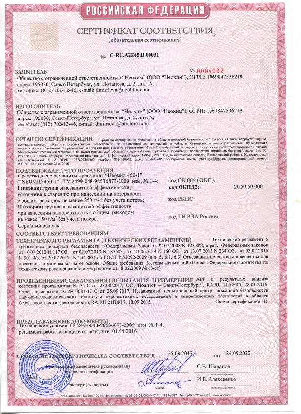 Огнебиозащита Неомид 450 20кг 2 группа