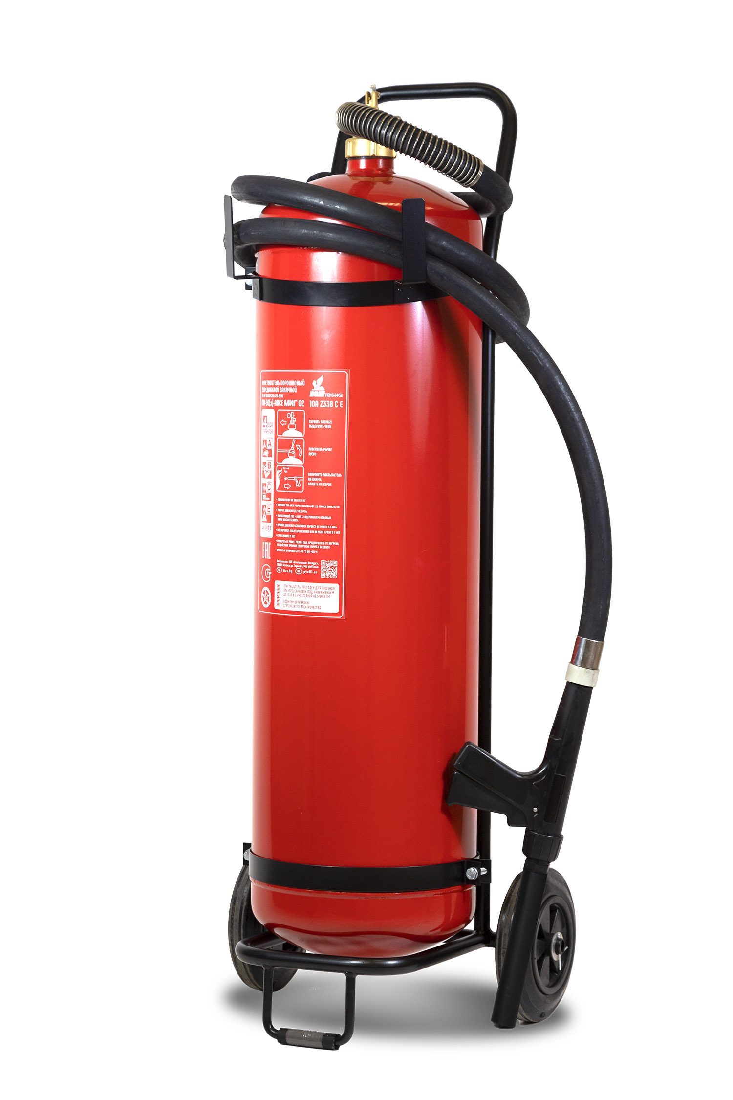 Имеет удобную съемную тележку, обрезиненные 200 мм колеса, морозостойкий резиновый распылитель. Благодаря наличию перекрывного ствола гарантируется эффективное применение огнетушителя одним человеком, что является обязательным требованием согласно ст.105 Федерального Закона ФЗ №123 «О требованиях пожарной безопасности» огнетушителя.
