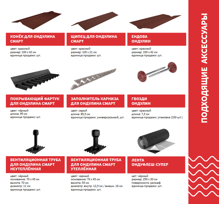 В компании «Материк» Ондулин Смарт можно приобрести поштучно со всеми необходимыми комплектующими с доставкой или на условиях самовывоза со складов.