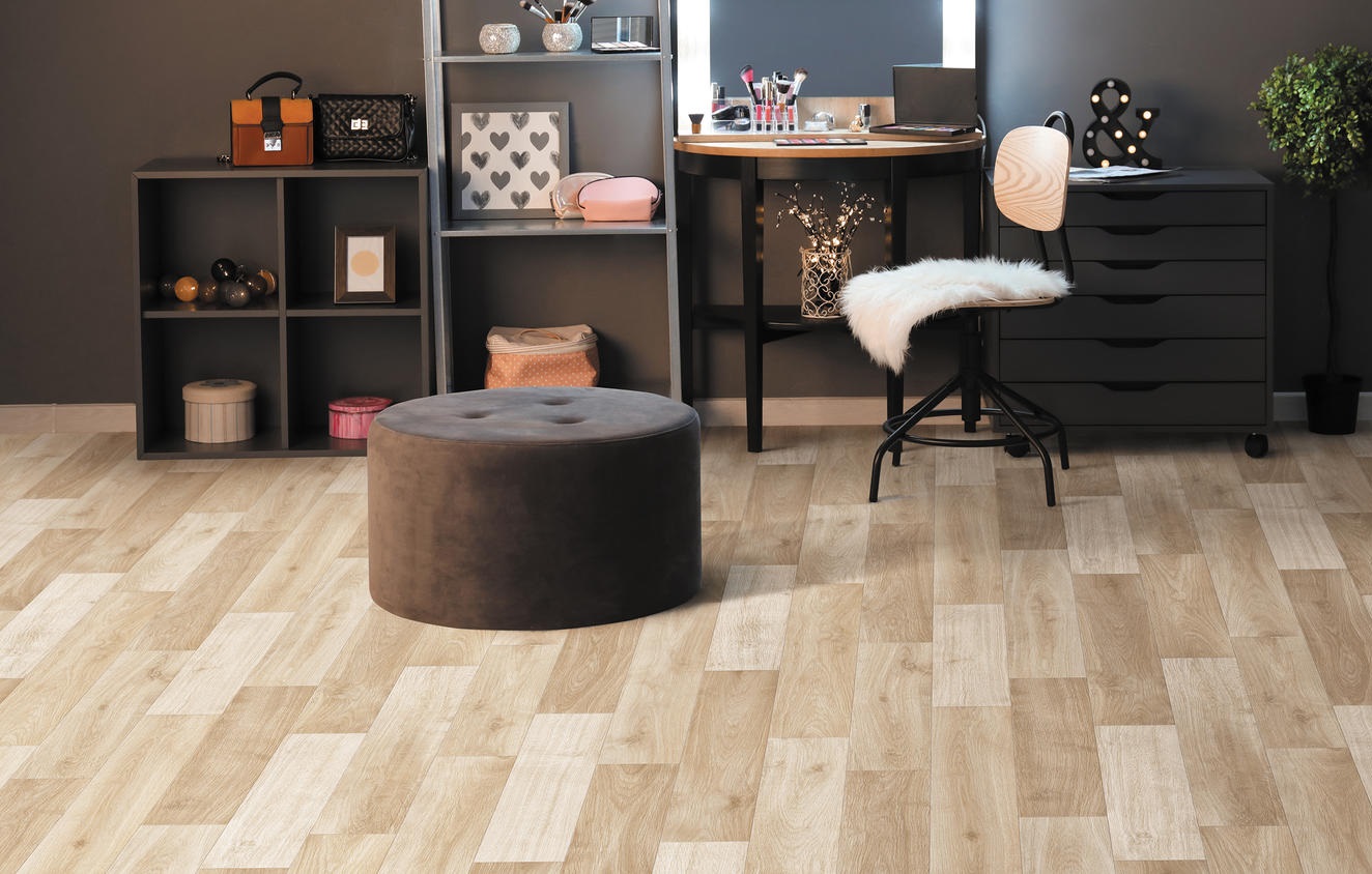 Линолеум – один из наиболее доступных материалов, предназначенных для обустройства пола. Он производится в виде рулонов, ширина которых может варьироваться от 0,5 до 5 м. Полотна укладываются на предварительно подготовленное (чистое, ровное и сухое) основание, а затем фиксируются с помощью специальных клеевых составов.