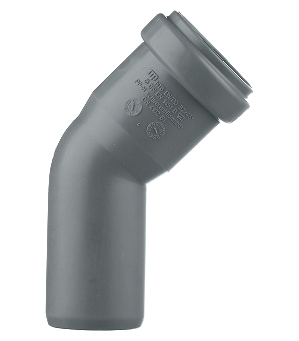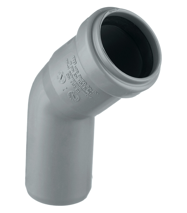 Фирменный фитинг системы Ostendorf для организации поворотов трубопровода под оптимальным углом 45°. Конструкция обеспечивает плавное изменение направления потока с минимальными гидравлическими потерями.