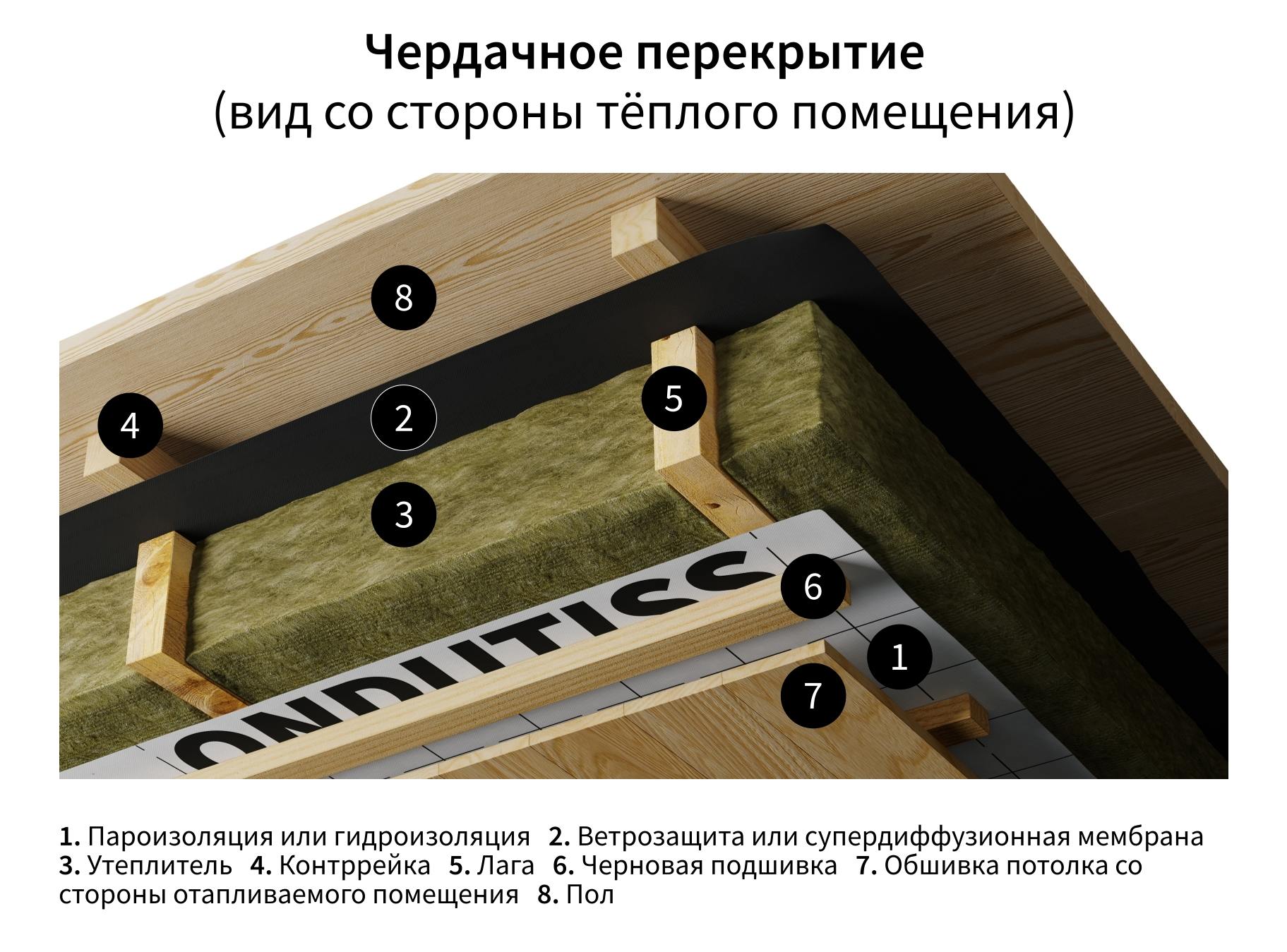 Ондутис B Смарт монтируется гладкой стороной к утеплителю, шероховатой к помещению.
