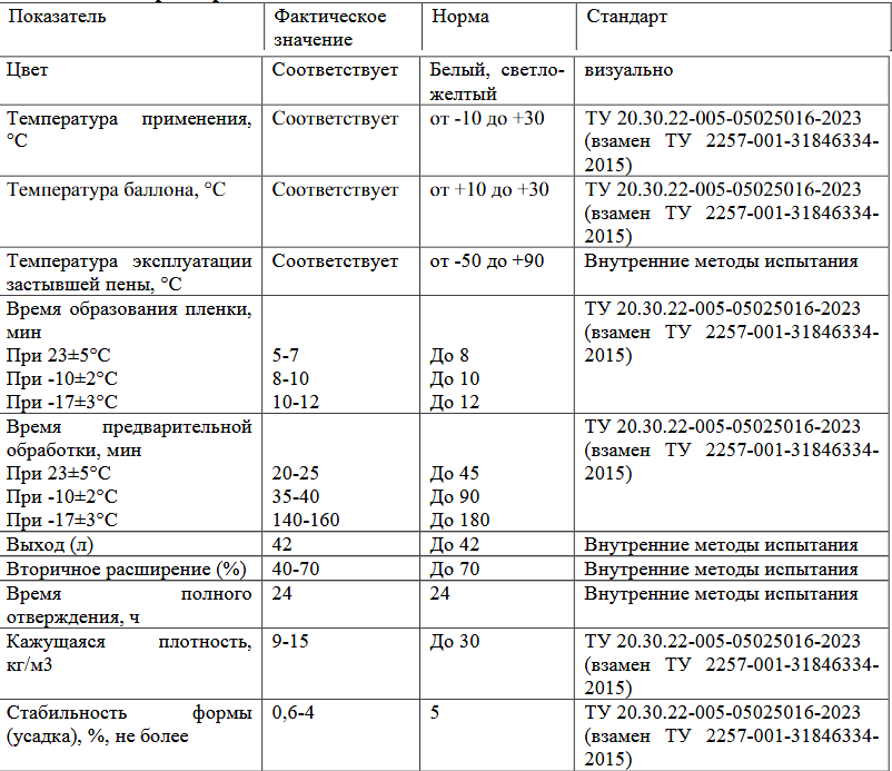 | Выход пены, л: | 42 |