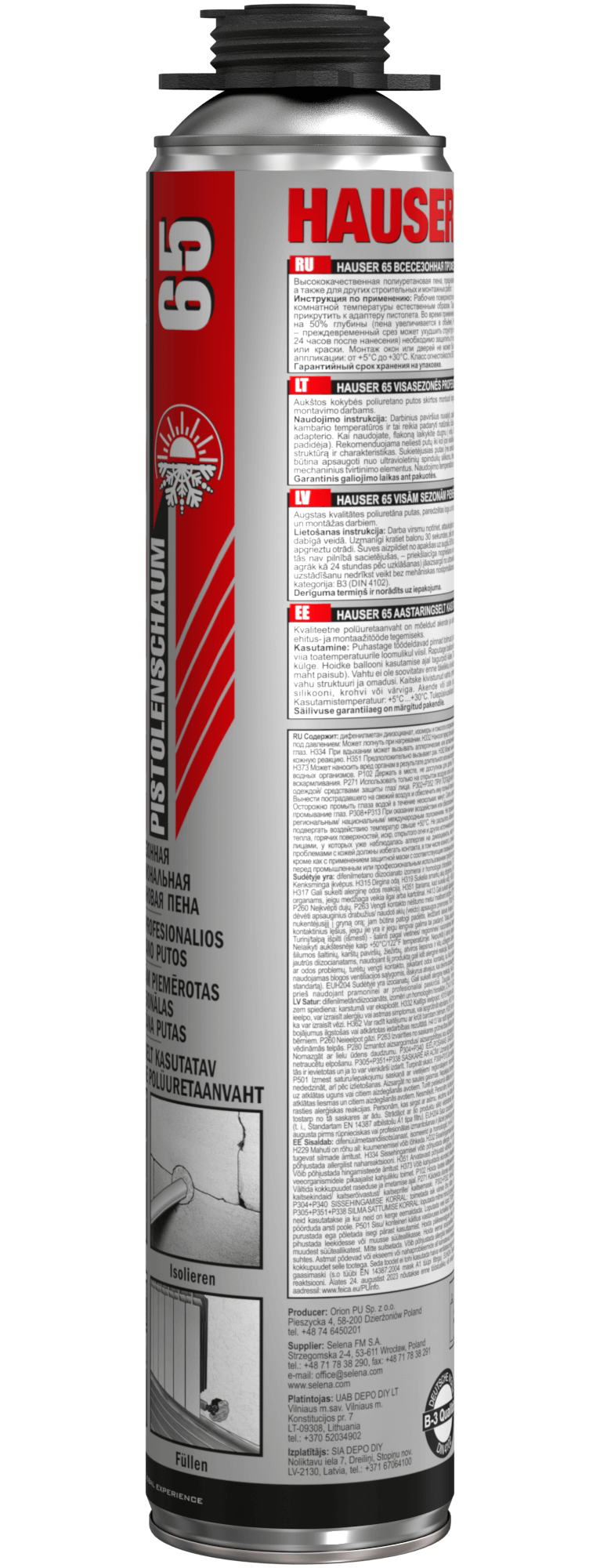 Пена монтажная Hauser 65 профессиональная всесезонная 740 мл