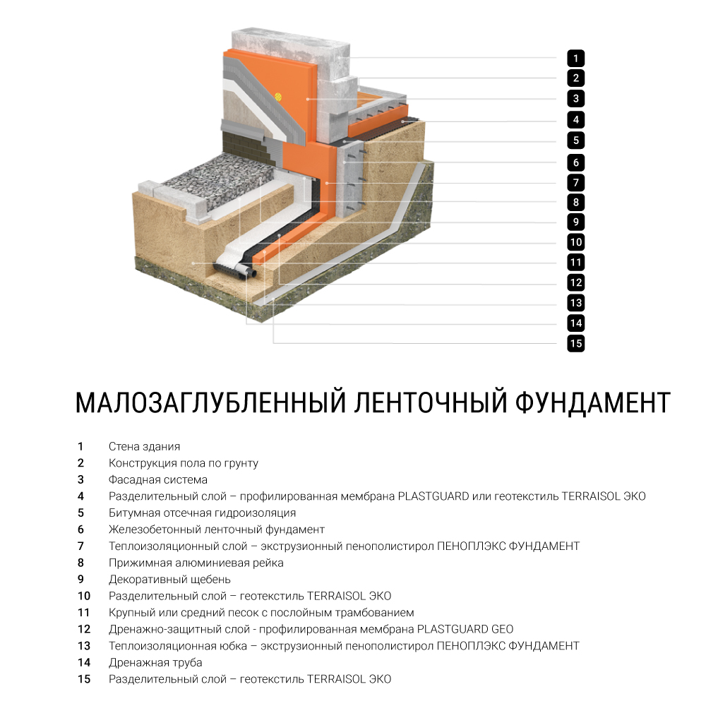 Хорошо утепляет разные виды фундаментов: ленточные, столбчатые, плитные.