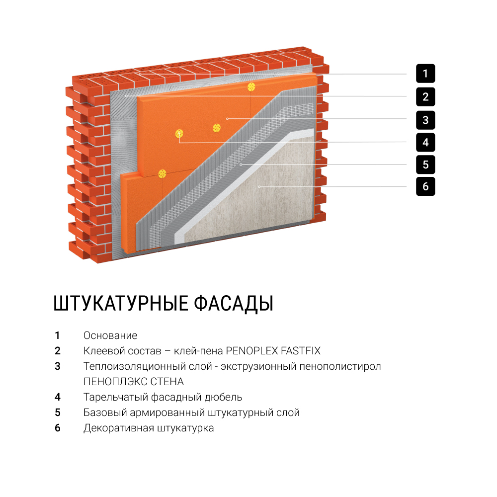 Утепление наружной поверхности стен. Плиты имеют фрезерованную шероховатую поверхность, что улучшает адгезию штукатурных и клеевых составов к поверхности материала и сокращает сроки выполнения штукатурных работ. Устойчивые к деформациям и влагостойкие теплоизоляционные плиты можно с успехом использовать как утеплитель в штукатурных системах, под фасадные панели и под декоративную вагонку. Штукатурная система с использованием плит Пеноплэкс стена позволит реализовать самые смелые дизайнерские решения для фасада Вашего дома, благодаря большому выбору фактур и цветов декоративной штукатурки, представленному на современном строительном рынке.