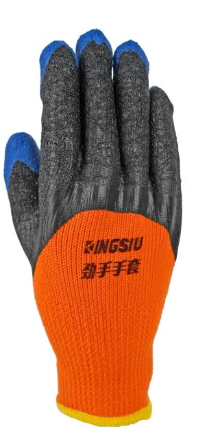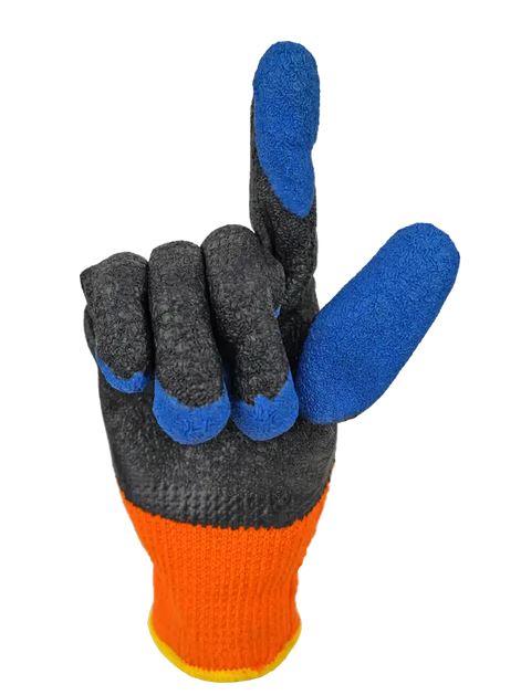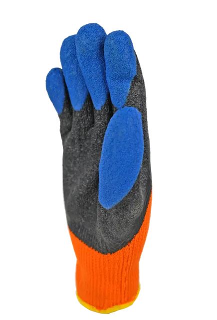 Перчатки латексные зимние Комфорт - 100 % акрил, оранжевого цвета. Покрытие из рифлёного латекса Palm в области ладони и пальцев, защищает от воды и гарантирует сцепление и сопротивление скольжению. Подходят для профессионального использования в условиях низких температур. (ПАРА).